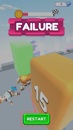 4、重新挑战:当画面出现“FAILURE”提示,点击“RESTART”按钮,立即重新开始新一轮挑战。