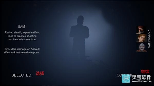 1、玩家进入暗夜潜行Z界面,点击第一个角色后点击选择后,点击右下角的继续;