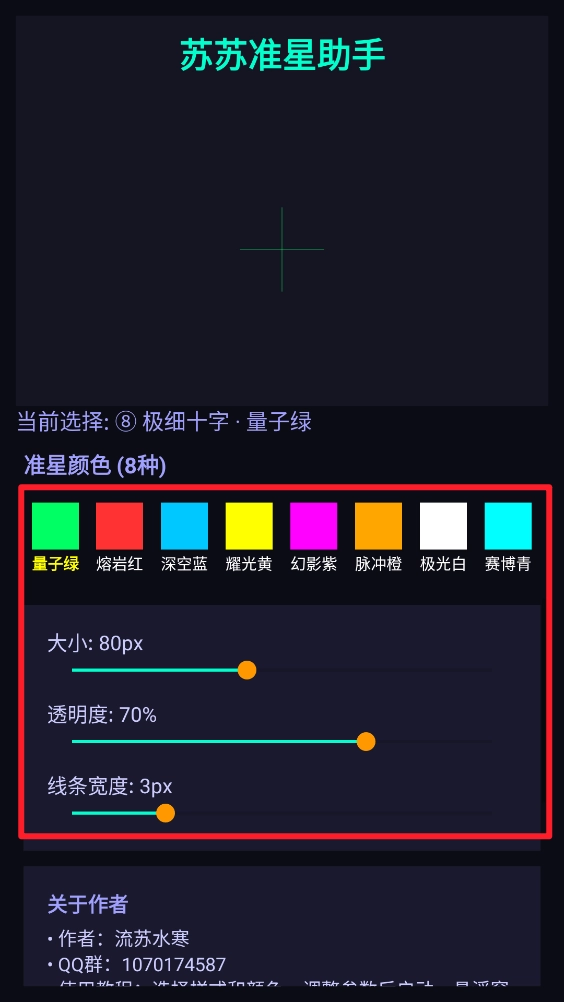 3、用户可以自由调节准星的大小、颜色、透明度和偏移量,实现精准的个性化设置。
