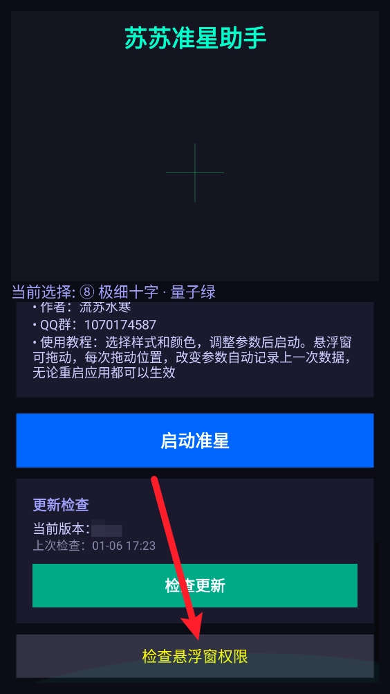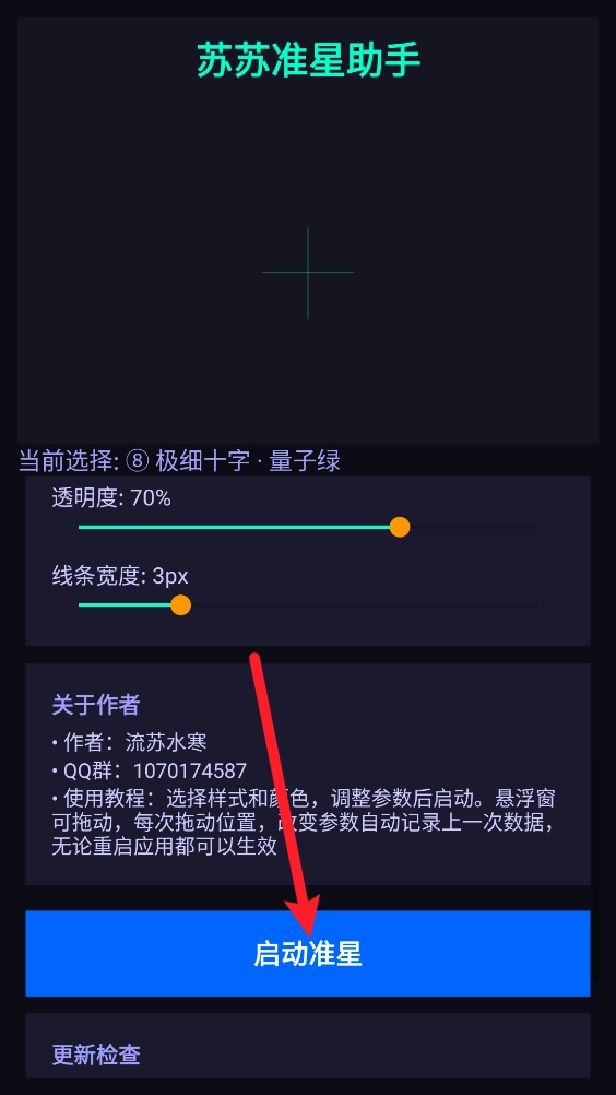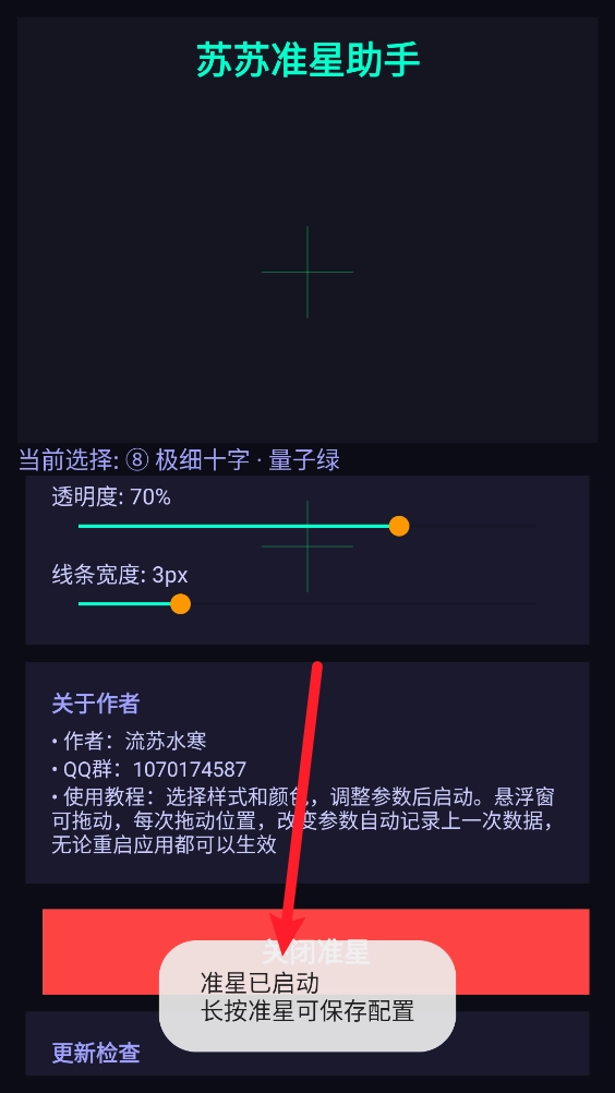 8、如图所示,最后成功开启,支持拖动准星位置,改变参数自动记录上一次数据,应用都可以生效。