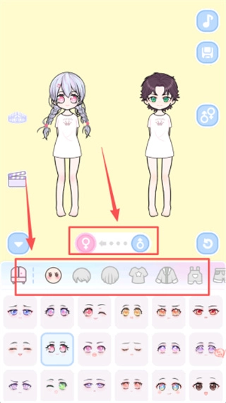2、借助性别切换按钮挑选男孩或女孩的形象,再运用下方的表情、发型、服饰等图标来开展个性化的搭配。