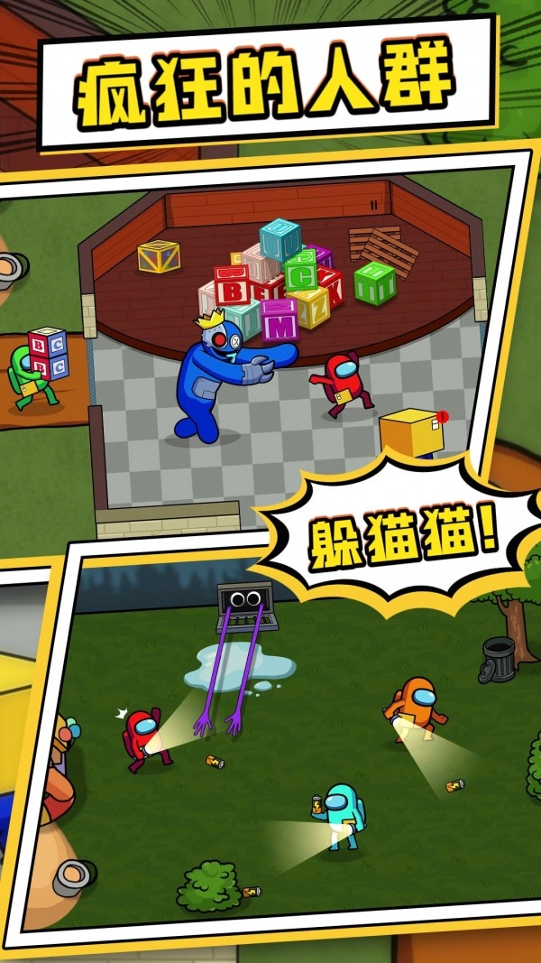 《疯狂的人群游戏》是一款躲猫猫题材的多人大乱斗游戏,玩家需要躲避追捕以求生存,最终可以获得游戏奖励。游戏内提供多种道具,助力玩家达成目标,欢乐十足的挑战体验十分精彩。在这里,你将化身顶尖竞技者不断成长,还有机会熟悉所有你喜爱的玩法,快来一起开启成长之旅吧!