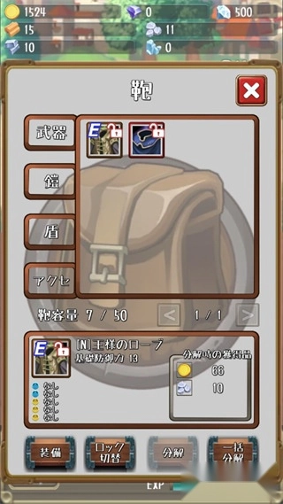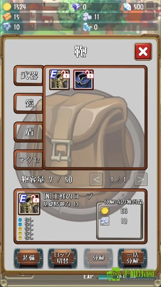 4、在背包里,我们可以查看刷怪掉落的武器装备,了解它们的详细参数后,就能自行选择穿戴。