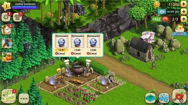 2、探索各种美丽的小岛,种植特别的植物、水果和鲜花,用它们制作Zombium;