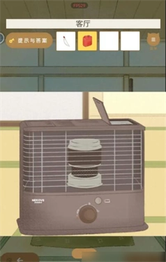 前往最右侧的门口场景,获取灯油与泵头并将二者组合。返回大厅后,点击左侧的暖炉,在暖炉右上角找到一处隐蔽的开口,取出里面的空盒子,接着把灯油灌入盒内。用于点火的火柴位于右侧卧室场景中上方的落地花瓶里。