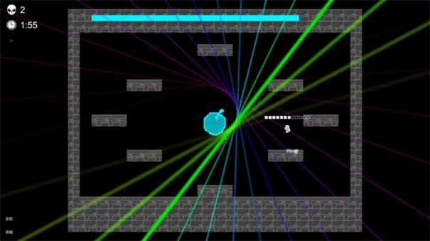 最终的Boss是死神,左上角和右上角会发射不同类型的弹幕,死神自身还会追着玩家进行攻击。想要通关还是得找到规律才行,不过因为弹幕躲避起来难度较高,所以整体关卡的挑战性还是挺大的。