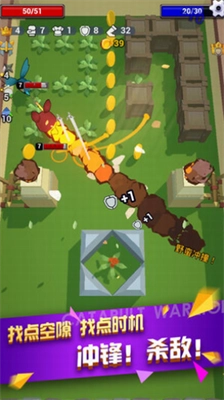 游戏的核心玩法是通过弹射碰撞来消灭敌人,在这个过程中,除了最后一击之外,角色不会受到任何伤害;不过需要注意的是,即使是用最后一击消灭敌人,buff毒的效果依然会叠加。