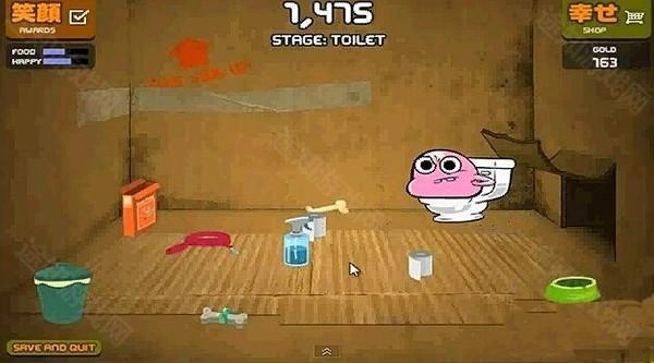 答:这个时候宠物不仅仅要满足食物了,玩也很重要,去商店买那个绳子,那个东西增加心情很快,如下图所示,宠物拿绳子后你选择一个礼盒打开,好东西就会加分,坏东西(如大便)就会扣分。