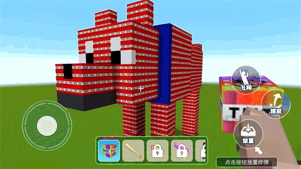 可以自由放置炸药,摧毁建筑物、石头和地形等。