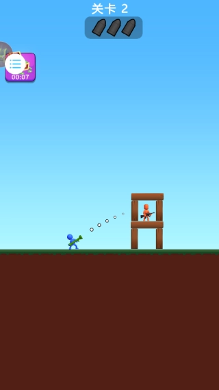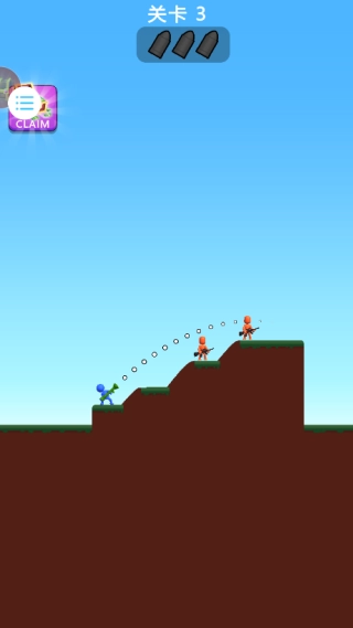 2、在关卡对战中,玩家点击屏幕滑动控制角色瞄准,松开手即可射击。