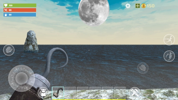 3、海洋资源可通过木筏上的渔网获取,部分深海区域还能打捞漂浮的塑料,海岛资源需徒步探索收集。