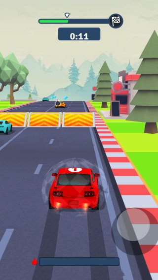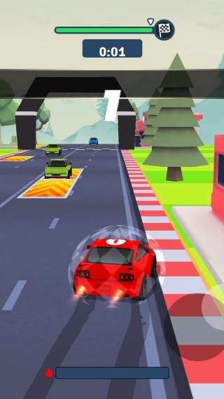 3、借助防护盾道具的保护,在赛道上灵活移动躲避车辆与障碍,利用最后 1 秒的时间窗口全力冲刺,尽可能超越前方车辆。