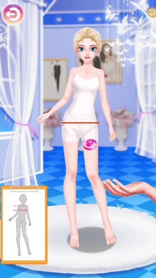 1、进入游戏之后,给模特进行量身,使体型更符合穿搭需求,提升整体造型协调度。