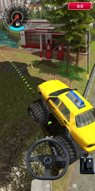 3. 借助屏幕下方的方向盘,辅助汽车调整行进方向。按照虚线的指引,顺利抵达终点即可。