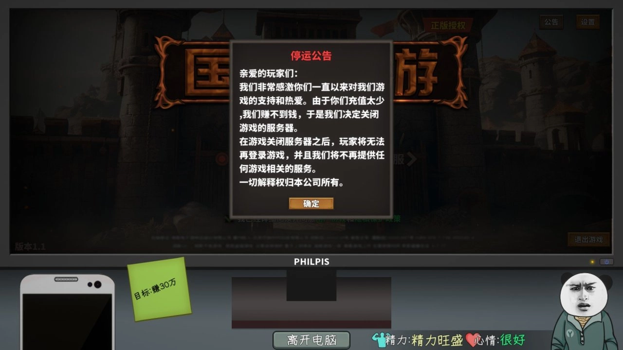 除了第一天首次充值6元外,之后就不要再充任何钱了。平时好好上班,下班后想玩游戏就上去随便逛逛点点。要是长时间不上游戏,结局会自然发展,但无法触发关服结局,所以没事还是得登录一下游戏,只要不充钱就行。这个结局达成速度挺快的,大概10天左右就能完成。