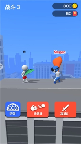战斗开始后,你既可以主动向前发起攻击,也能选择投掷手中的武器来打击对方;当对方对你发动攻势时,你还能采取防御姿态来应对。