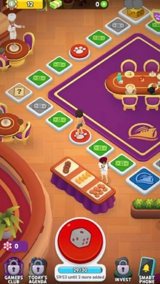 1、掷骰子移动角色,投资邮轮上的建筑与设施,通过策略规划累积最大财富。