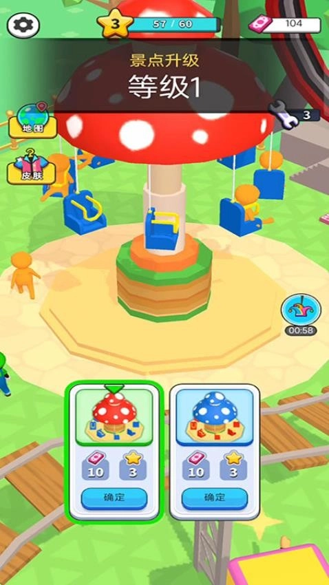 要时刻留意游乐园的等级提升情况,等级越高,解锁的建筑设施就会越多样,进而能帮助我们积累更多的资金财富。