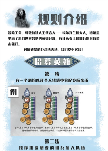 2.招募英雄:第一步:把你的竞标金币分配到三个酒馆和个人钱袋里。第二步:依照顺序挑选你喜欢的佣兵加入你的队伍。