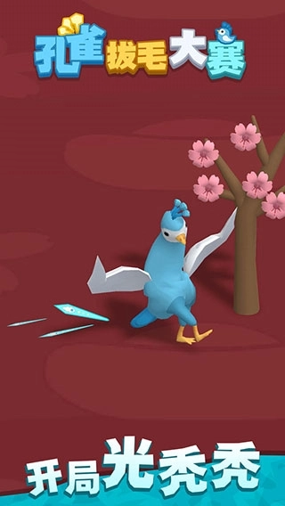 在拔毛比赛里,你得指挥一只孔雀,刚开始的时候,玩家的孔雀尾巴上一根羽毛都没有。