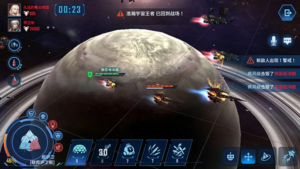 通过指尖在屏幕上的滑动操作,你可以自由调整战场视角——无论是360度旋转、拖动画面、放大缩小,都能轻松实现。借助这些操作,你能精准指挥战舰完成规避敌方炮火、灵活走位、集中火力攻击目标,甚至绕到敌后突袭等复杂战术。在广阔的星系中自由穿梭,用智慧和操作掌控战局,最终赢得胜利!