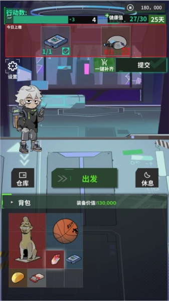 当前单局时长设定为30天,每局游玩时间大约1小时。游戏过程中无需将所有物品变卖,保留红色与金色品质的物品,利用仓库存储产生的利息,足以支撑前期每天租满背包的开销,建议每天进行一次物资搜索。若地图资源刷新不理想,可适当留存体力。进入后期(约20天后),任务难度会显著提升,此时可根据实际情况选择放弃高难度任务,或挑选消耗较少的任务通过一键补齐功能完成。只要运气不至于太差,且后期拥有充足的资金与业绩,即可顺利通关。