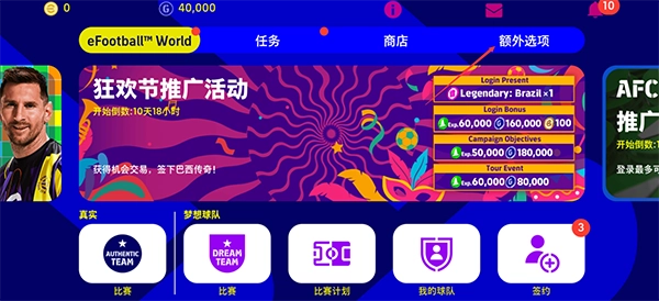 这款足球游戏的核心部分是其名为“eFootball World”的板块。
