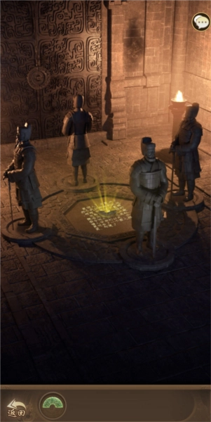 按照图中兵马俑的布局站位,点击后方墙体时会出现箭头提示站位信息。