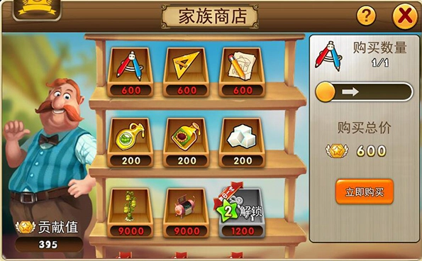 家族商店家族商店取消族长使用家族资金的进货过程,加入更多物品,方便玩家直接使用自己的家族贡献值购买。部分道具每日限购一次。