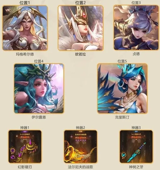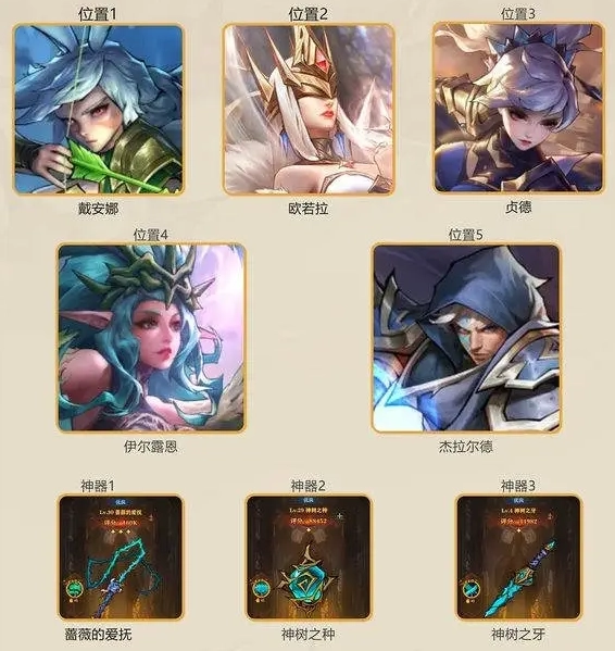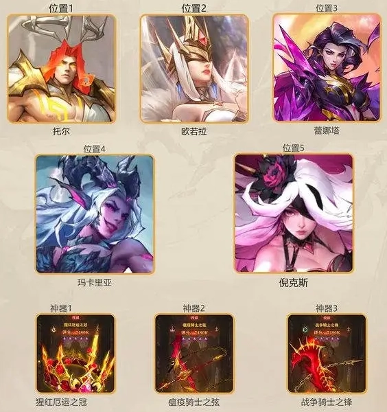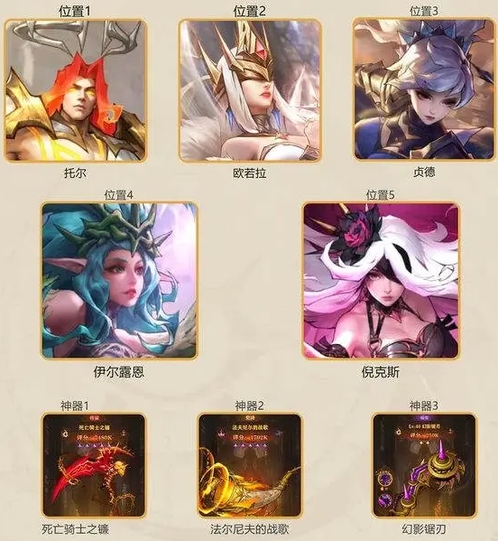 欧若拉可以大幅提升队友的攻击力;伊尔露恩可以降低对手的防御力;贞德作为主力输出、使用斩杀技能进行收割。英雄获取容易,可以快速成型,伤害爆发高,适合前期推图使用。