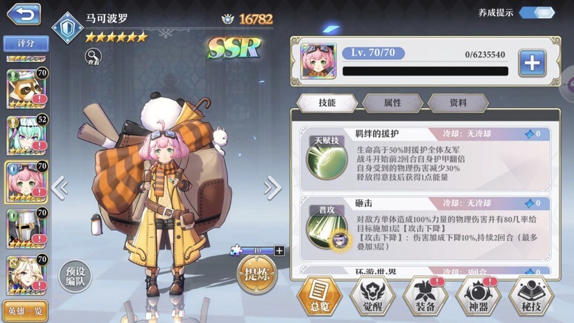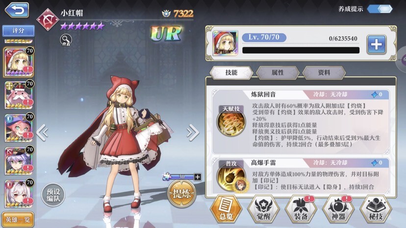 光奶:拥有群体减伤和无敌。培养指数五颗星。优势场合:推图、梦境、回廊。星级过度平滑,四星启用。