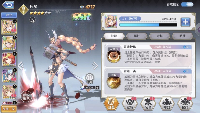 托尔:培养指数五颗星。优点:三星就很强,星级过度平滑,越高星越猛。缺点:第二回合才能提供强大输出。优势场合:pvp、推图。