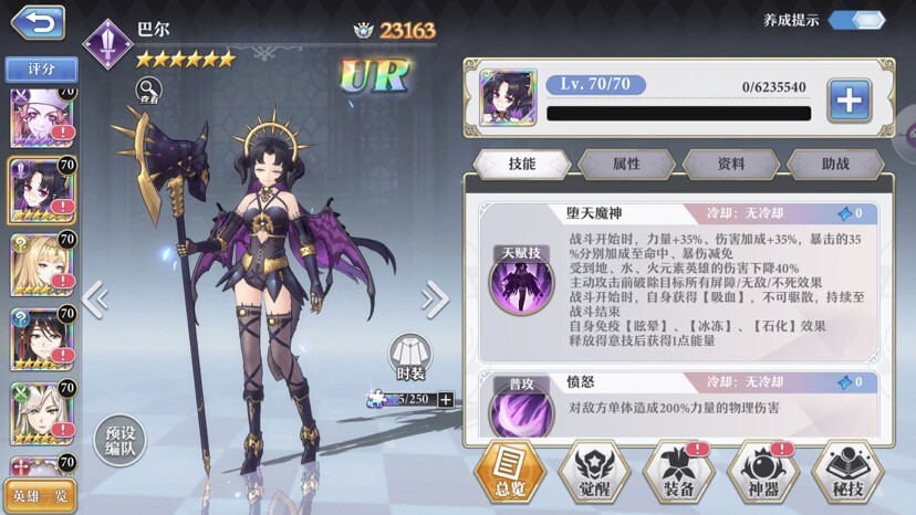 暗系首席刺客,培养价值拉满五颗星。亮点在于英雄星级提升过程十分平滑,强度能随星级稳步增长。适用的优势场景包括推图和PVP。