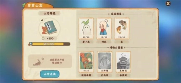 在“家园-山志”界面,你能够查看收集进度,同时也能看到这里设有“山志等级”,该等级每提升一级,就能增加50点舒适度。