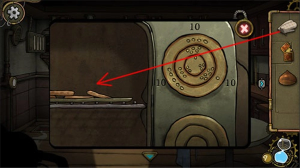 像图中所示,打开烤炉后,先点击道具栏里的手套,接着点击烤炉内部的物品。