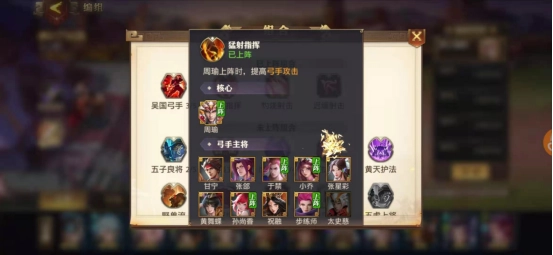 推荐的核心组合包含一位能统领特殊精锐部队的武将,这支被称为“军中翘楚”的部队能额外召唤两名战力强悍的同类型士兵,大幅增强整体作战输出能力。