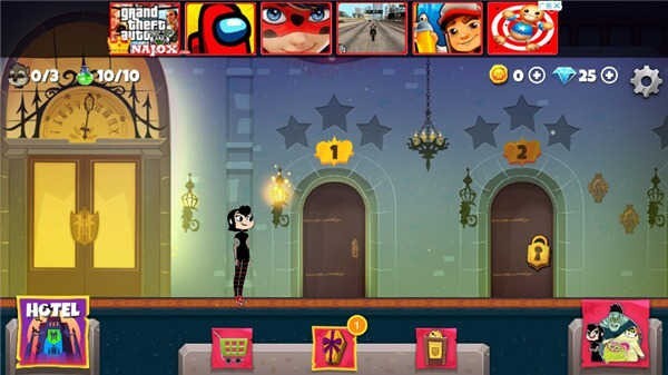 奔跑时收集的金币可以用来修复酒店。把旅馆里所有的东西都收拾好,让琳达姨妈不再被关在菲菲斯家里了!