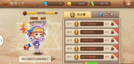 城堡,点击进入后就来到竞技场主界面,我们可以看到竞技场内有两种比赛模式——积分赛和练习赛。