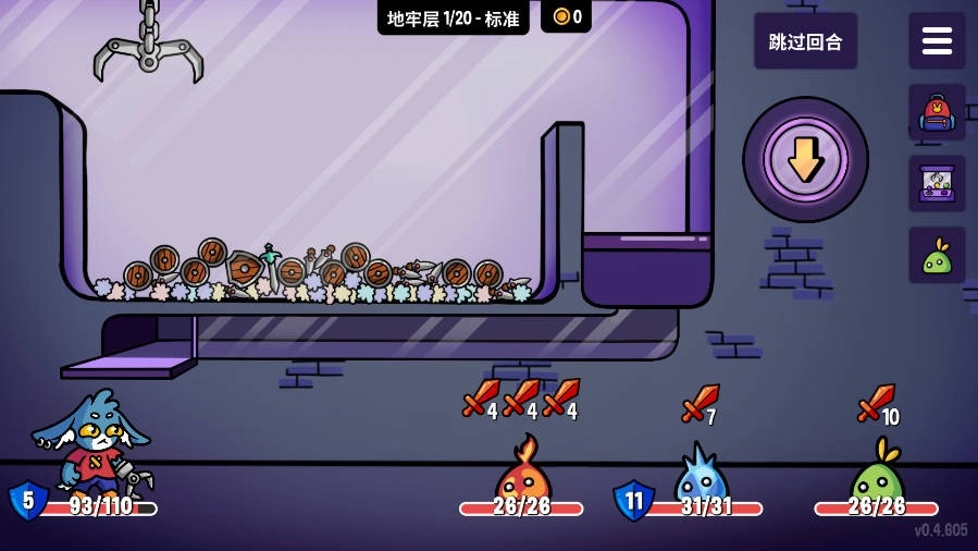 在这款游戏里,玩家需要操控娃娃机去抓取形形色色的物品,以此来调整自身的游戏策略。这些物品里,既有盾牌、剑这类实用的防御武器,也有毒药之类的消耗品,甚至还能抓到水或岩浆这类带有特殊效果的物品。玩家能够依据自身的战斗需求,自由搭配这些物品,创造出专属于自己的独特战斗方式。