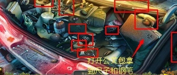 我们用汽车钥匙打开后备箱,发现里面又藏着一个寻物游戏。完成游戏后拿到了断线钳,接着向右走,前往下一条街道,然后穿过那座桥。