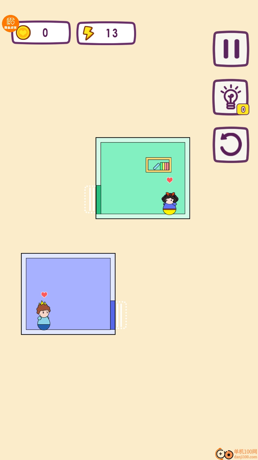 2、房间移动方式简单便捷,您只需在游戏关卡中移动房间,就能让角色相遇