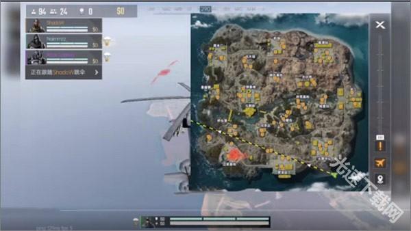 5、调整完毕后,点击“开始游戏”,玩家会与自己的三人小队,和其他玩家一同乘坐飞机降落到一座孤岛上,展开一场大逃杀对决。