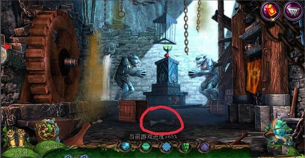 接下来进入哥布林所在的房间场景,把地面上的箱子挪到右侧;点击位于右上方的架子,获取钳子和连接器这两个物品。