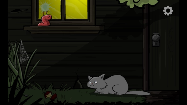 第二关的通关步骤是这样的:先点击门把手,猫咪就会出现;接着点击蜘蛛网,再点击那个烂苹果,虫子会吐出浆液,猫咪就会离开。之后点击猫咪,它会再次回来,这时点击门上的树影,就能进入洞穴。在洞穴里快速点击四个按钮,出来后点击猫咪,猫咪会死亡,最后点击门把手,就能过关了。