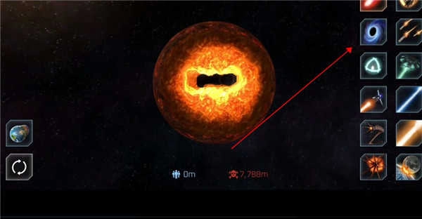 首先打开行星粉碎模拟器游戏,点击下图中的按钮;