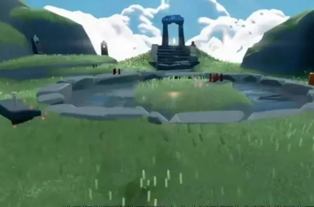 3. 云野新添了一扇大门,门后藏着一个小金人,无翼玩家路过此处时要留意,别不小心误碰到了。 不过好在这个小金人并非自动收取的,而且它是从蝴蝶结先祖旁边移过来的,并不是新增加的。