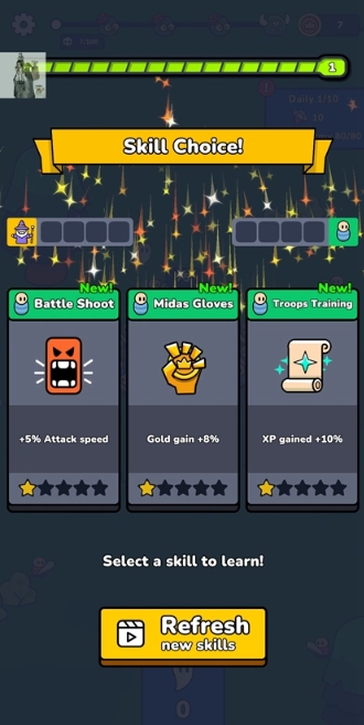 不必担忧,只需轻点按钮,就能让倒下的战士重返战场,为队伍增添力量。把可用的灵魂平均分配给已解锁的部队,这样就能保证军队始终保持平衡且强大的状态。