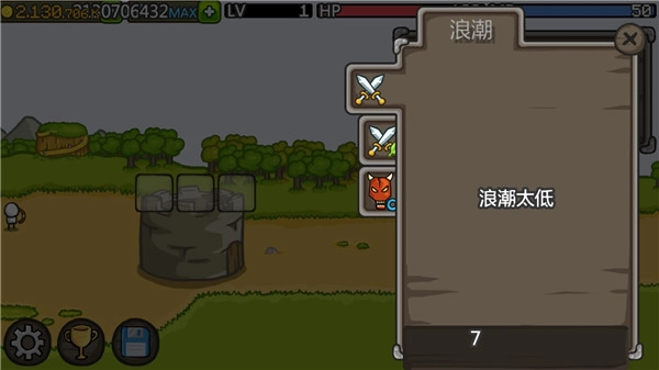 2、城堡塔楼具备成长功能,其每一层都能安置英雄。当金钱数量提升时,玩家可购买更多的英雄以及装备武器。
