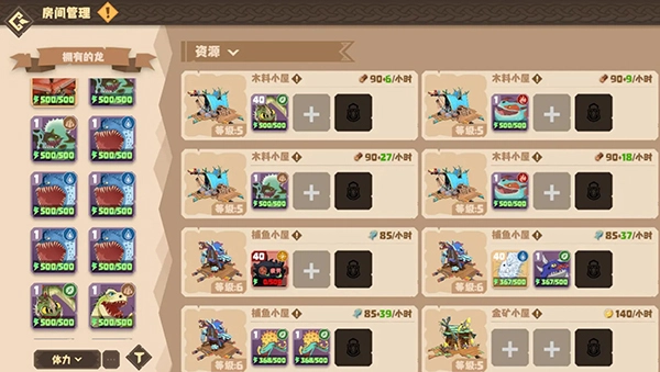 小屋的资源储备量有限,要记得经常登录来收取资源,另外也得及时安排没体力的龙去龙舍休息——合理调配工作与休息的节奏,才能让收益达到最大化。