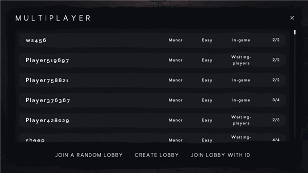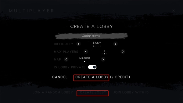 3、还可以点击createlobby,选好房间的难度和人数后,点击创建房间就可以了;